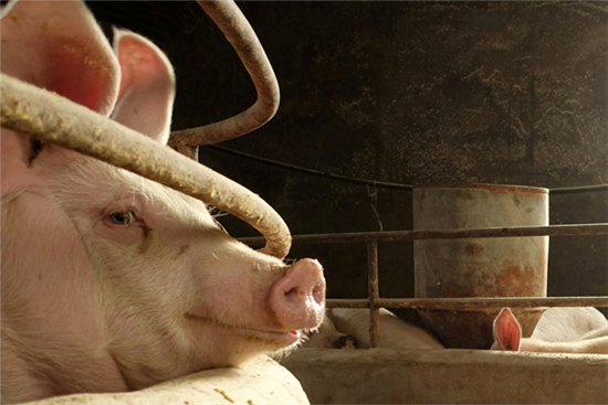 FILE PHOTO: A pig is seen on the farm of pig farmer Han Yi at a village in Changtu county, Liaoning province, China, January 17, 2019.