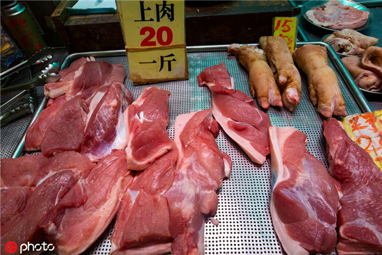 Pork is sold at a wet market in Hong Kong, Dec 20, 2018. [Photo/IC]